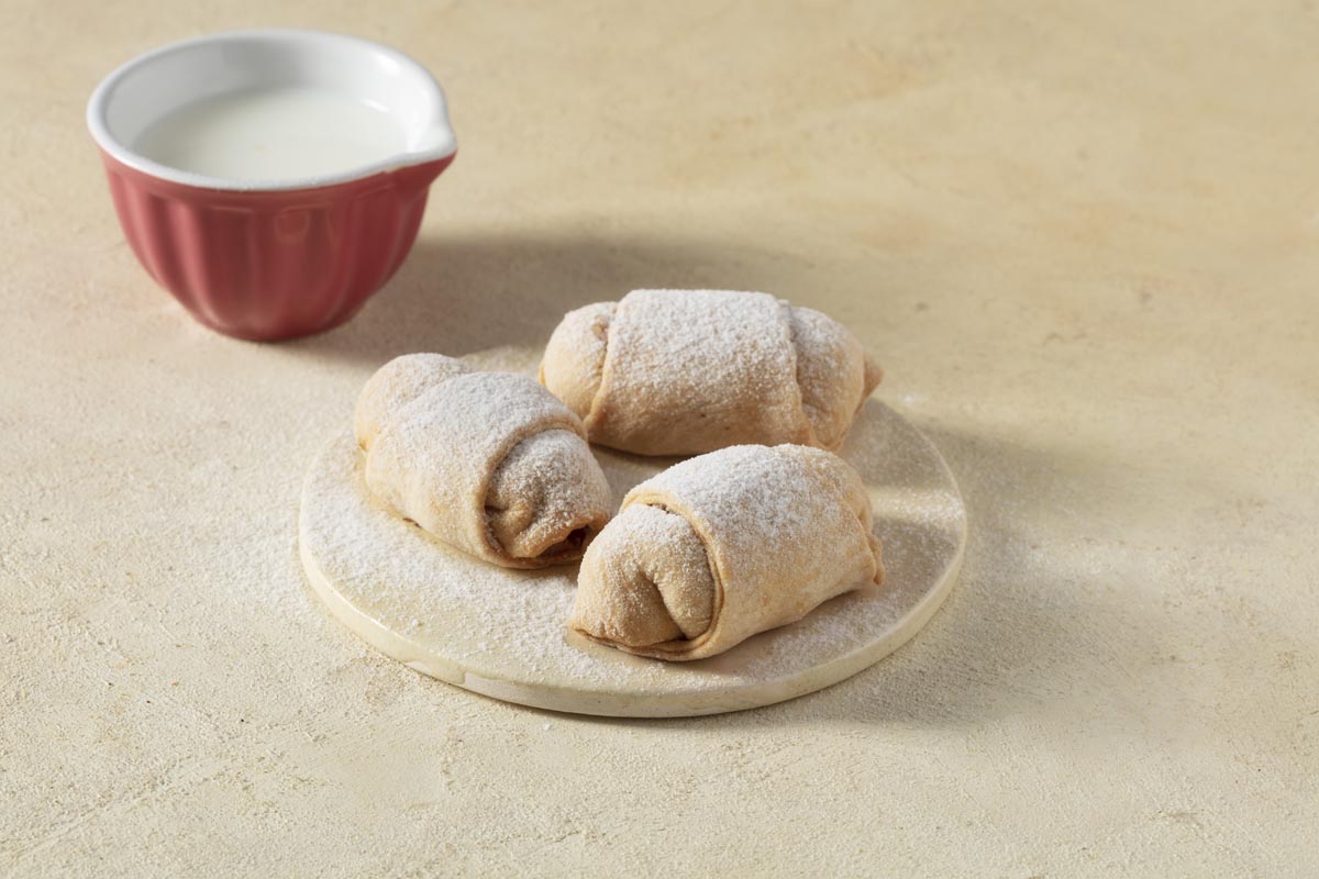 Buğday unu, tereyağı, pudra şeker, tarçın ve elma marmelat